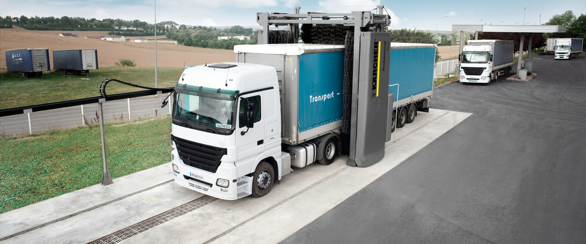 Требования к мойке грузовых автомобилей высоки, потому что в зависимости от назначения и типа транспортного средства загрязнение грузового автотранспорта сильно различается. Следовательно, применяемая технология мойки должна обеспечивать быстрое и надежное удаление грязи, например, пятен смолы, следов масел и брызг грязи, а также сезонных отложений (например, дорожной соли, пыльцы, насекомых и листьев) наряду с бережной обработкой поверхности автомобиля.