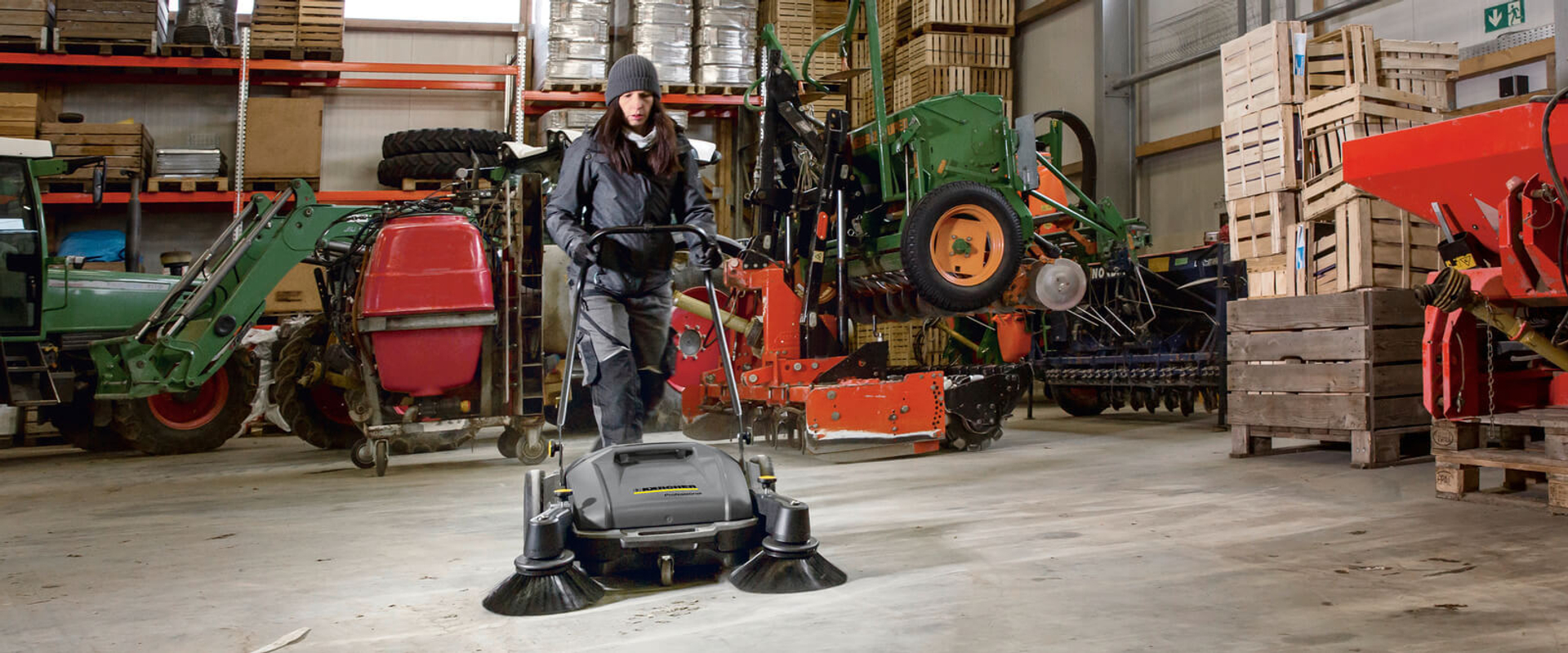 При выборе подходящей машины решающее значение имеет ее пригодность для сбора больших объемов мелкой пыли. Для этого требуется наличие подходящего фильтра и устройства его очистки. Необходимо также обратить внимание на достаточный объем бункера машины и соответствие ее рабочей ширины размерам очищаемых площадей. В зависимости от них выбирается и оптимальная версия машины – толкаемая или с сиденьем для оператора.