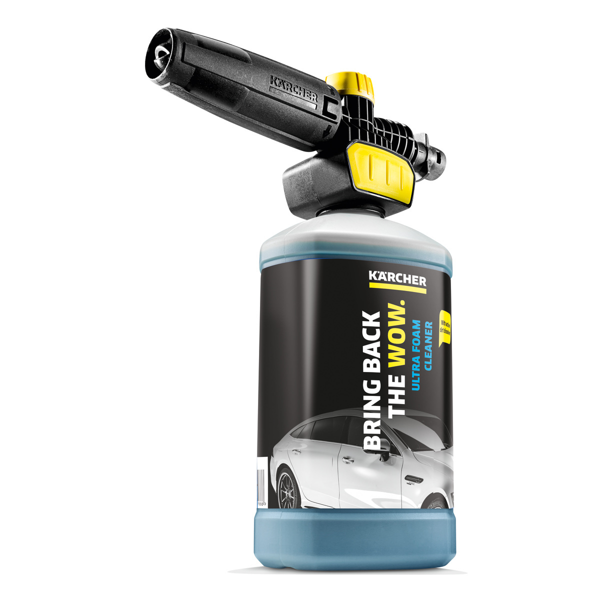Регулировка производительности и направления распыла струи позволяет оптимально настроить режим работы в зависимости от модели аппарата высокого давления (минимойки), вида и концентрации применяемого моющего средства. Бачок для химии пеногенератора имеет объем 1 л. Пенная насадка подходит для всех моделей бытовых аппаратов Karcher.