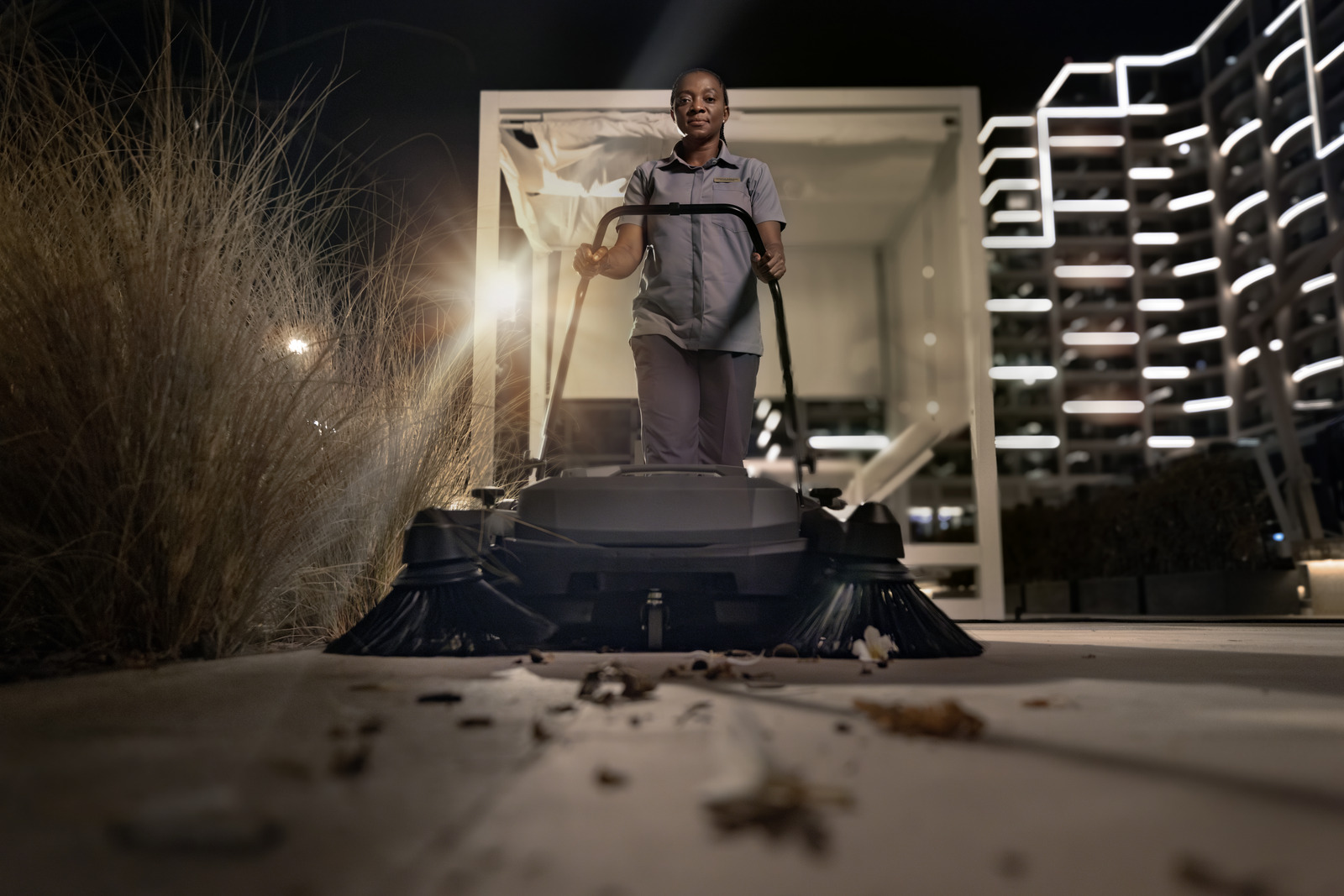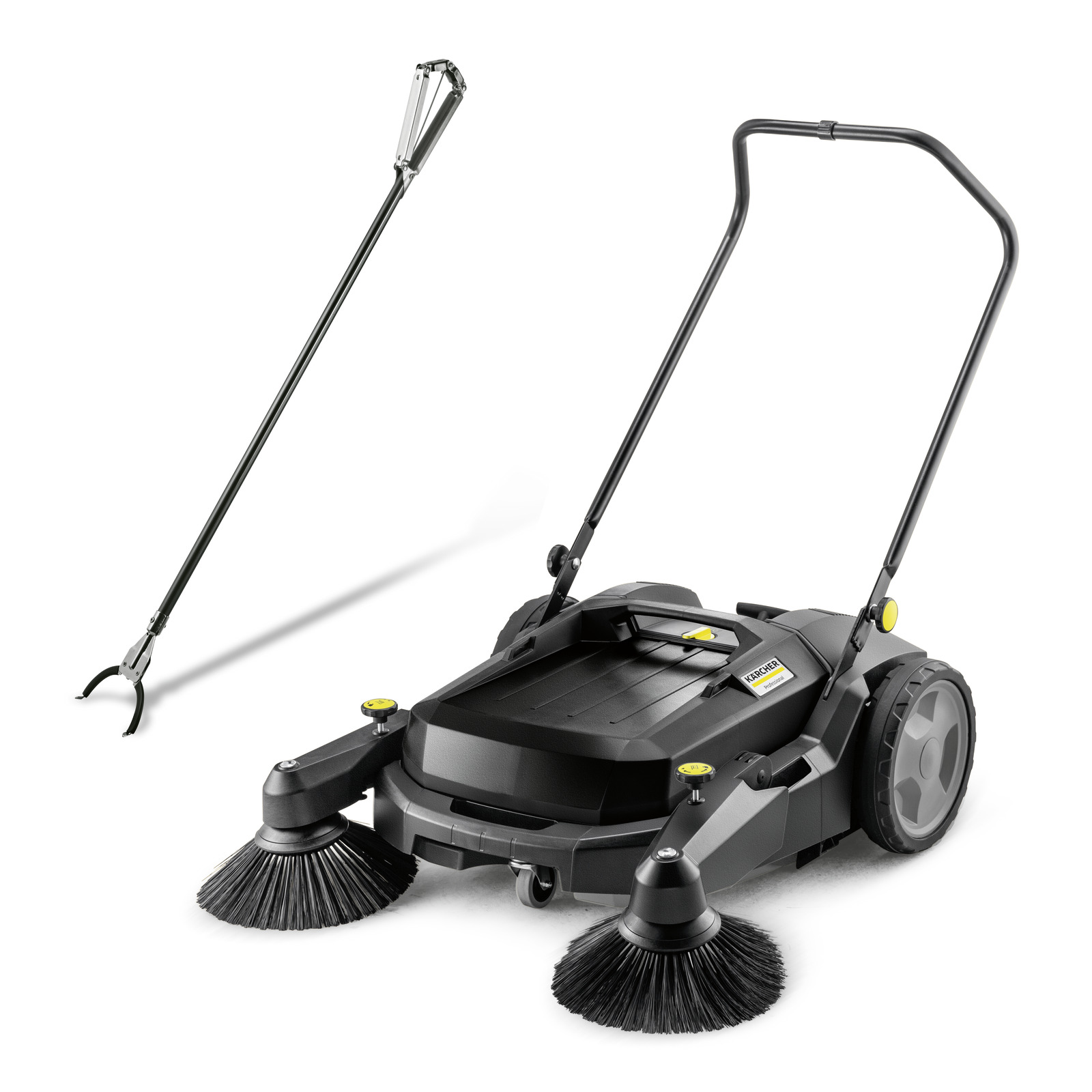 Лимитированная модель черной ручной подметальной машины KM 70/20 C Go!Further, на более чем 30 % состоящая из переработанного пластика¹⁾ и оснащаемая эксклюзивными принадлежностями, с двумя боковыми и одной цилиндрической щеткой подходит для эффективной уборки как помещений, так и наружной территории. В сочетании с ручным приводом чистка становится простой и эффективной: производительность по площади KM 70/20 C 2SB Go!Further в 9 раз выше, чем у обычной щетки для подметания. Роликовая щетка с шестиступенчатой регулировкой высоты установки в сочетании с плавно регулируемыми боковыми щетками позволяет добиться оптимальных результатов при чистке различных напольных покрытий. Встроенный фильтр практически исключает распространение пыли. За эргономичную работу отвечает регулируемая по высоте поводковая рукоятка. Приспособление для перевозки уборочного инвентаря позволяет удобно перевозить дополнительные принадлежности, такие как ведро или щипцы для крупного мусора. Это позволяет за один рабочий цикл помимо пыли и грязи собирать и вывозить мусор. После использования KM 70/20 C 2SB Go!Further можно компактно хранить благодаря парковочному положению. Эксклюзивно в комплект поставки входят щипцы для крупного мусора.