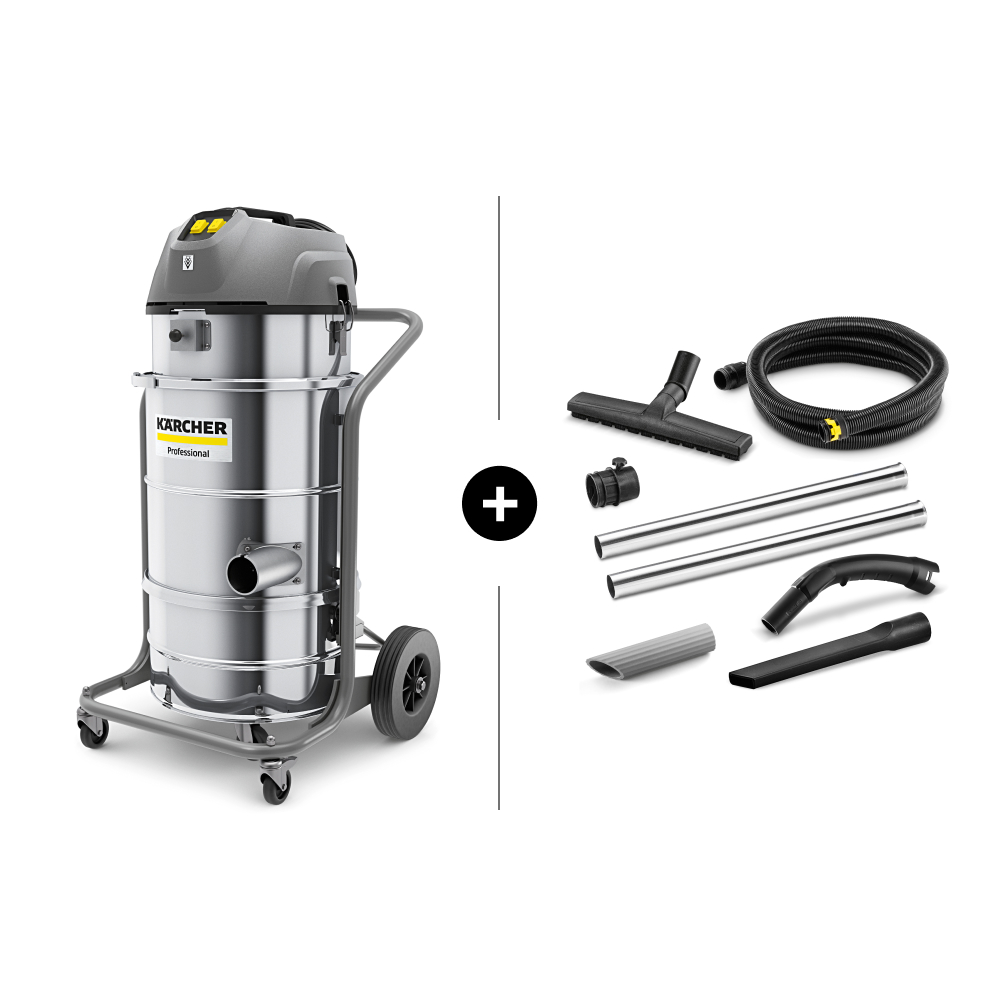 Мобильный и надежный 2-моторный промышленный пылесос среднего класса IVM 40/24-2 для сбора мелкой пыли и крупного мусора. Со звездчатым фильтром класса M. + Комплект аксессуаров для сбора сухого мусора Professional DN40