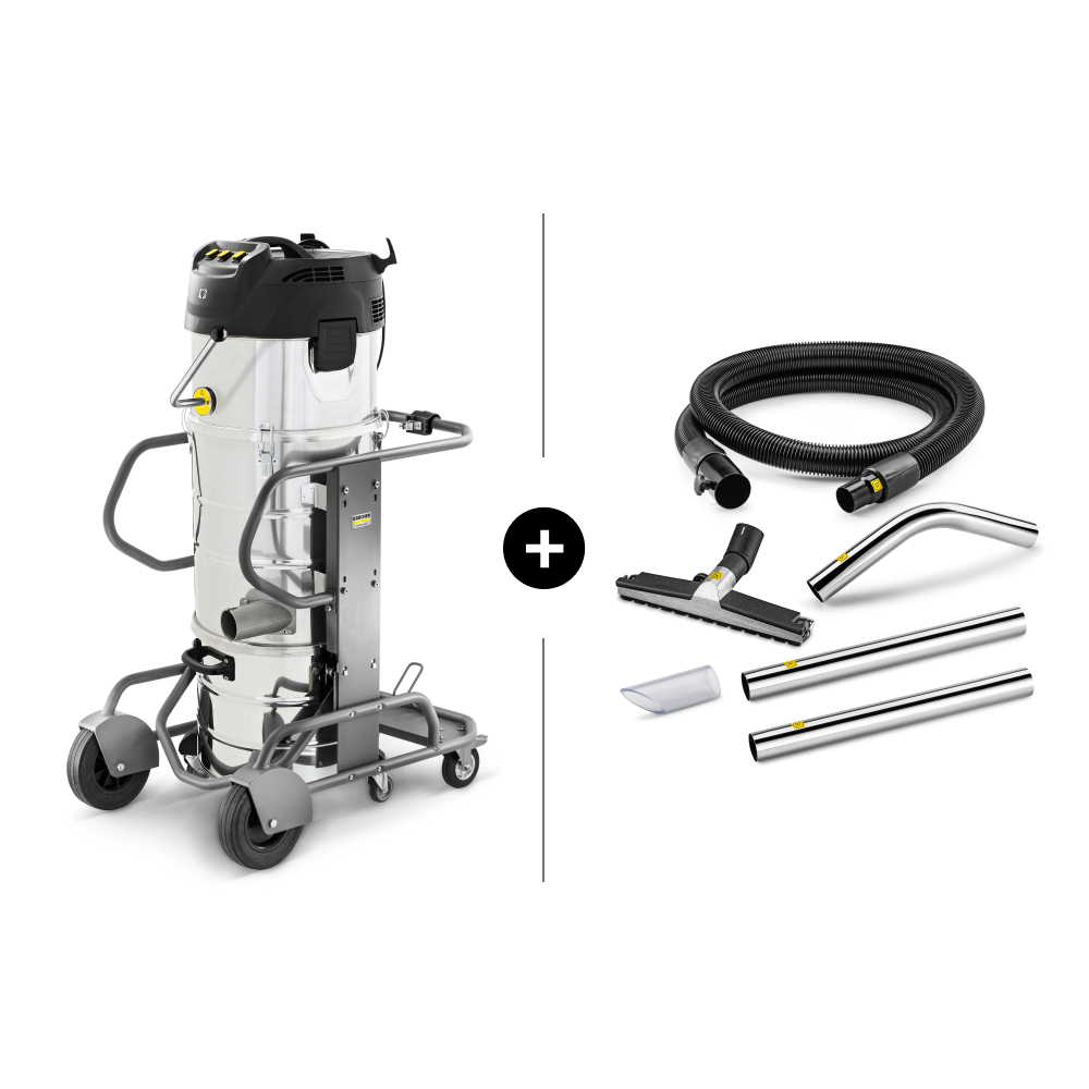 Трёхмоторный мобильный и прочный промышленный пылесос среднего класса IVM 60/36-3 для универсального использования в промышленности для уборки мелко- и крупнодисперсных твёрдых материалов. Со звёздчатым фильтром класса M. + улучшенный набор аксессуаров для сбора сухого мусора DN50 Advanced