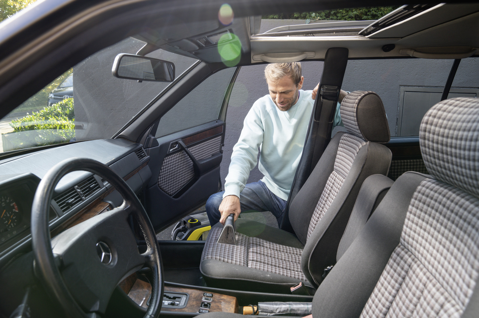Тщательная уборка с максимальной свободой движений: моющий пылесос SE 3-18 Compact Battery Set очищает текстильную обивку на всю глубину ворса, удаляя из него все загрязнения. Аппарат имеет компактную конструкцию и благодаря питанию от аккумулятора Kärcher Battery Power 18 В может использоваться в местах, где нет возможности подключиться электросети. Например, он обеспечивает удобную и тщательную очистку сидений и ковриков в салоне автомобиля, текстильной обивки дверей и багажника. Аппарат, не уступающий в производительности сетевым моющим пылесосам, прекрасно подходит и для очистки мягкой мебели (в т. ч. садовой). При этом его длинный и эластичный шланг с интегрированной подводкой воды обеспечивает удобную очистку труднодоступных мест. Моющий пылесос впечатляет и гигиенической функцией промывки, позволяющей после уборки удалять из него и шланга остаточные загрязнения, предотвращая тем самым размножение бактерий и образование неприятного запаха.
